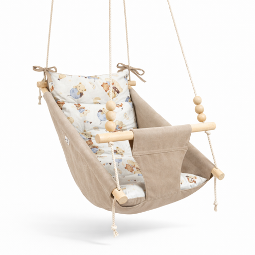 Підвісна дитяча гойдалка «Колиханка», мікровелюр бежевий з ведмедиками