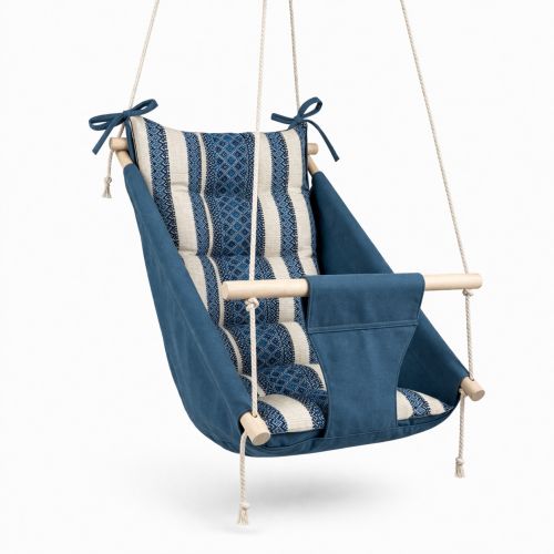 Підвісна дитяча гойдалка «Колиханка», мікровелюр синій з вишиванкою