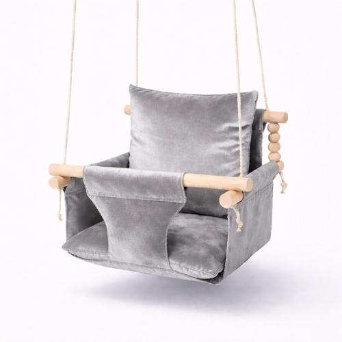 Підвісна дитяча гойдалка «Стандарт», оксамит світло-сірий