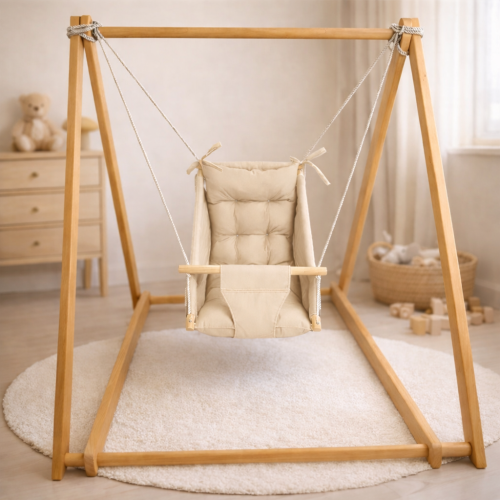 Комплект «Деревянная опора + качалка», хлопок бежевого цвета