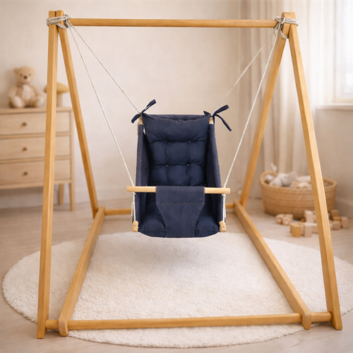 Комплект «Деревянная опора + качалка», хлопок синий