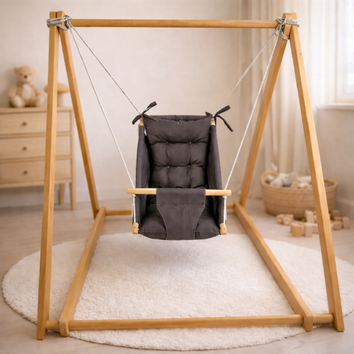Комплект «Деревянная опора + качалка», хлопок темно-серый
