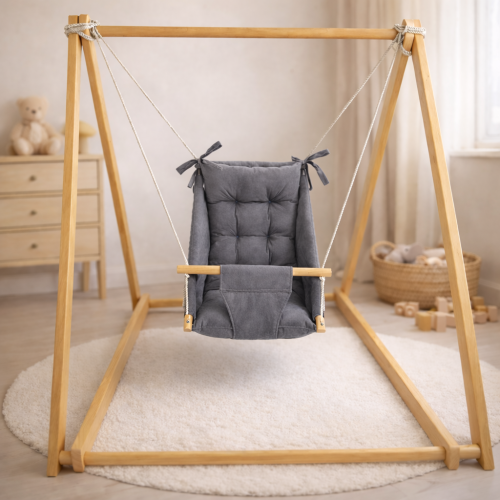 Комплект «Деревянная опора + Качалка», микровелюр серый