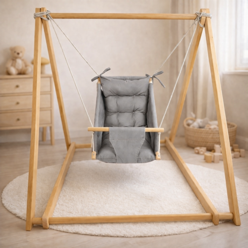 Комплект «Деревянная опора + Колыбельная», хлопок серый