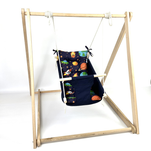 Комплект «Деревянная опора + Колыбельная», хлопок синий с космосом