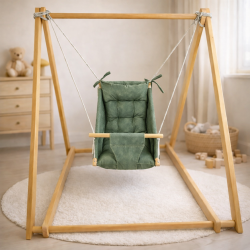 Набор «Деревянная опора + качалка», хлопок зелёный