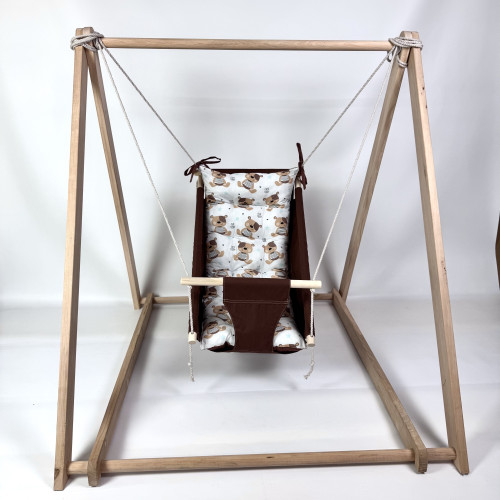 Комплект «Деревянная опора + Колыбельная», хлопок коричневый с мишками