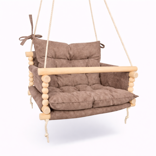 Подвесная детская качель «Джуниор», хлопок коричневого цвета с мраморным узором