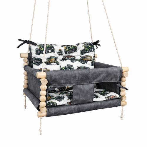 Подвесная детская качель «Джуниор», водоотталкивающая темно-серая мрамор с машинками