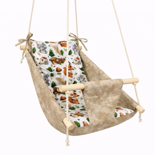 Подвесная детская качель «Колыханка», хлопок бежевый мрамор с классическим лесом