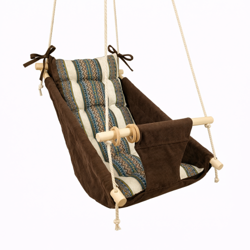 Подвесная детская качель «Колыханка», вельвет коричневый с вышивкой