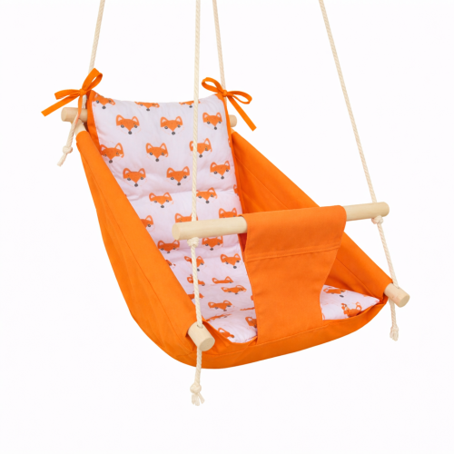 Подвесная детская качель «Колыханка», хлопок оранжевый с лисичками