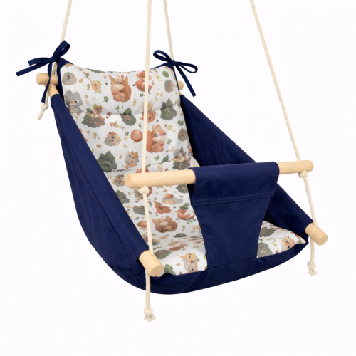 Подвесная детская качель «Колыханка», хлопок синий с классическим лесом