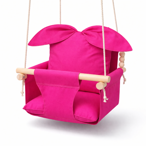 Подвесная детская качель «Стандарт», хлопок темно-розовый с ушками