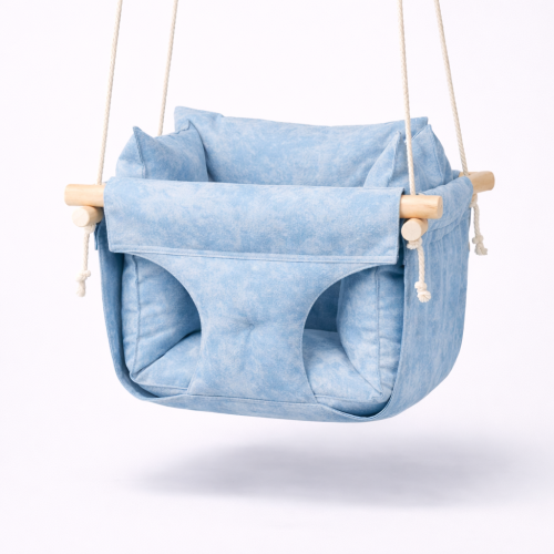 Подвесная детская качель «Премиум+», хлопок голубого цвета с мраморным узором