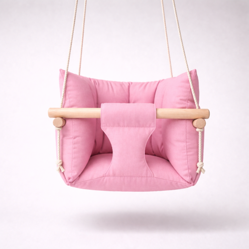 Подвесная детская качель «Премиум», хлопок розового цвета
