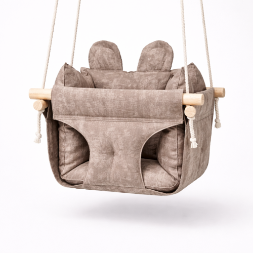 Подвесная детская качель «Премиум +» какао мрамор водоотталкивающая с ушками