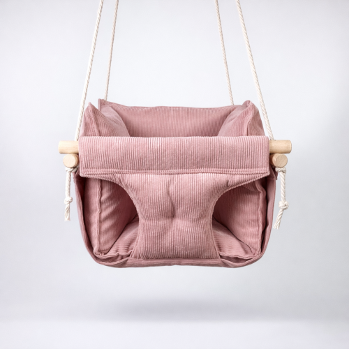 Подвесная детская качель «Премиум +», вельвет пудровый