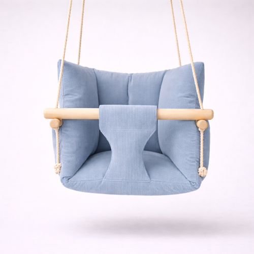 Подвесная детская качель «Премиум», вельвет голубой