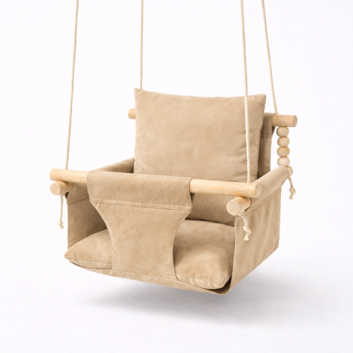 Подвесная детская качель «Стандарт», микровелюр бежевого цвета