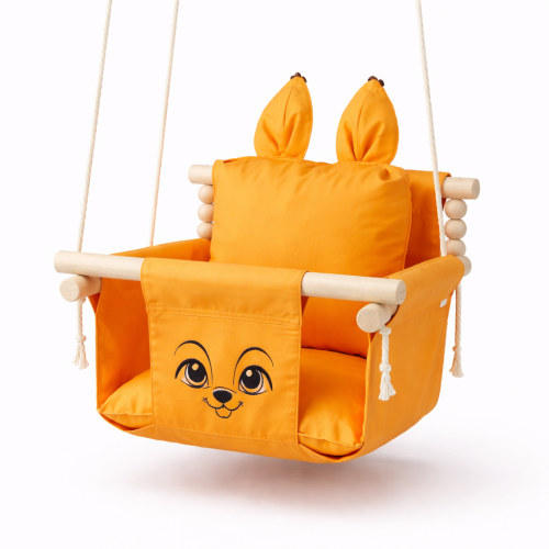 Подвесная детская качель «Зверушки», хлопок оранжевый с ушками