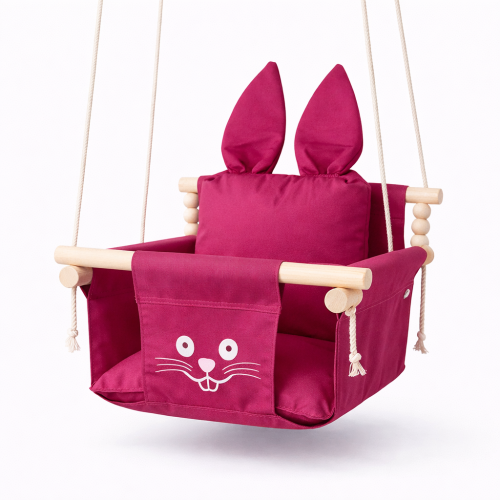 Подвесная детская качель «Зверушки», хлопок темно-розовый с ушками