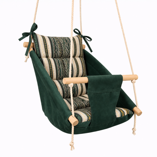 Подвесная детская качель «Колыханка», микровелюр зеленый с вышивкой